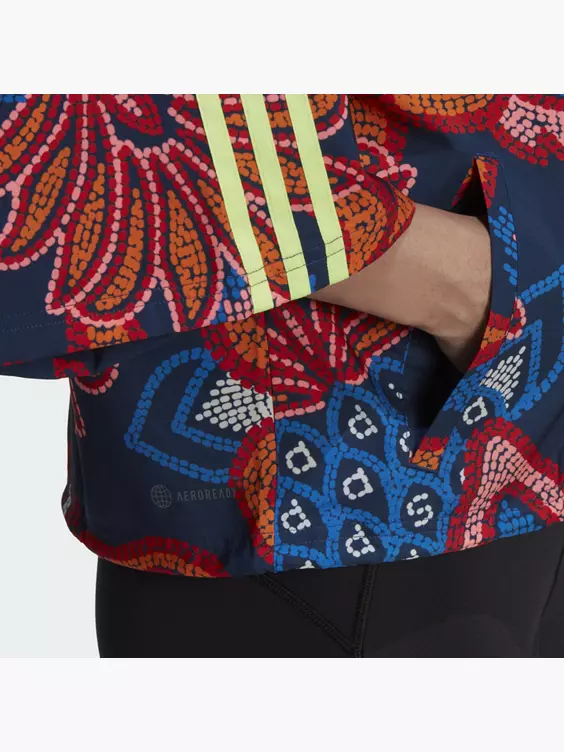 Mit dieser adidas x FARM Rio Trainingsjacke mit Ärmeln im Kimono-Style kann der Festival-Sommer starten! Sein wilder Look mit tropischen Symbolen für Natur, Gastfreundschaft und weibliche Power sorgt auf den ersten Blick für gute Laune. Strukturierte Details und die kontrastierenden 3-Streifen mit Retrovibe verpassen dem Design einen sportlichen Touch. Da ist aus der Masse stechen garantiert.Die Trainingsjacke ist Teil unseres Engagements gegen Plastikmüll und besteht zu 100 % aus recycelten Materialien.