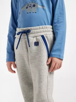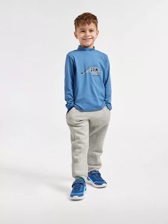 - in grau mit blauen Druck auf der hinteren Hosentasche