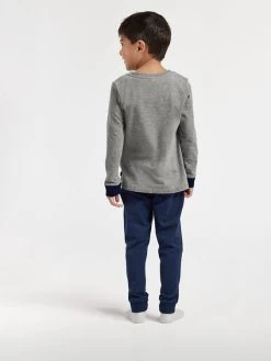 - Oberteil mit Druck auf der Vorderseite und Rippbündchen in Kontrastfarbe an den Ärmeln