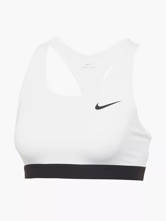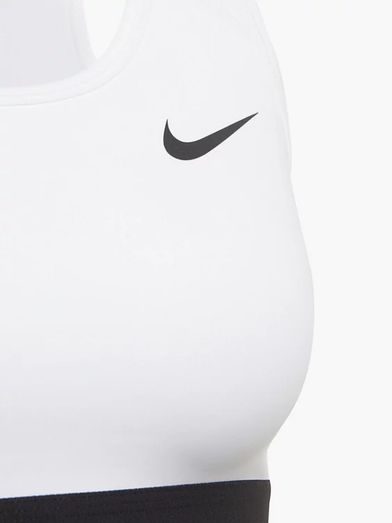 Der nicht gepolsterte Nike Swoosh Sport-BH bietet dank Kompressionsmaterial ein stützendes Tragegefühl bei mittelschweren Workouts. Das eng anliegende elastische Unterbrustband fühlt sich weich an.