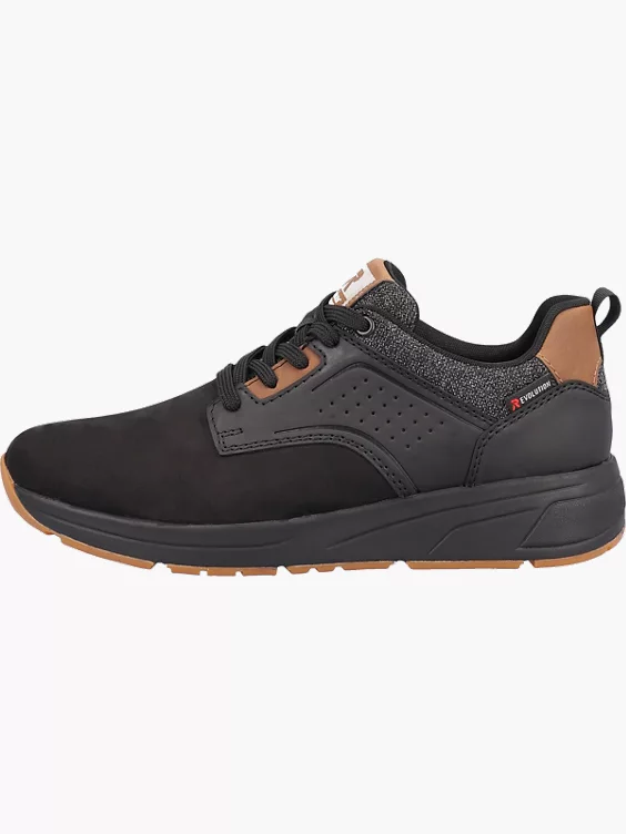 Sneaker-Freunde aufgepasst! Hier kommt Style und Komfort auf einen Schlag! Dieser lässige Rieker EVOLUTION Sneaker überzeugt durch seine coole Farbkombi aus Schwarz und Nussbraun. Die superleichte Sohle lässt einen bei Rutschgefahr nicht im Stich und sorgt für angenehmen Tragekomfort. Eine extra weiche Soft Einlegesohle federt jeden Schritt gekonnt ab! Bei Bedarf lässt sich die Innensohle im Handumdrehen herausnehmen.