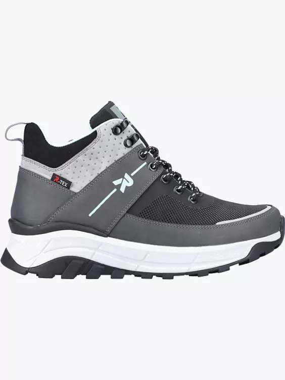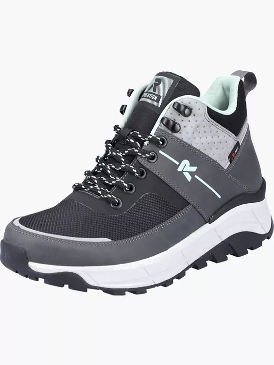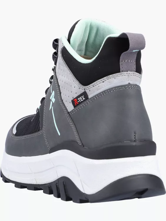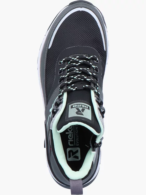 A touch of mint! Diese lässigen R-EVOLUTION Damen Stiefel in schwarzer Lederoptik mit mintgrünem R-Logo an der Seite sind stylisch und wetterfest. Durch die Rieker TEX-Membran mit Nano-Beschichtung bleiben die Schuhe frei von Schmutz und Nässe! Der knöchelhohe Schaft ist weich am Fuß und ein zusätzlicher Reißverschluss macht das Anziehen zum Kinderspiel. Die Laufsohle ist leicht und flexibel. Die softe Einlegesohle hat einen integrierten Kälteblocker und lässt sich leicht herausnehmen.