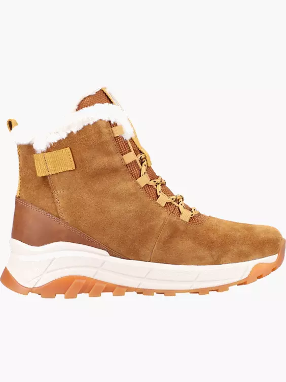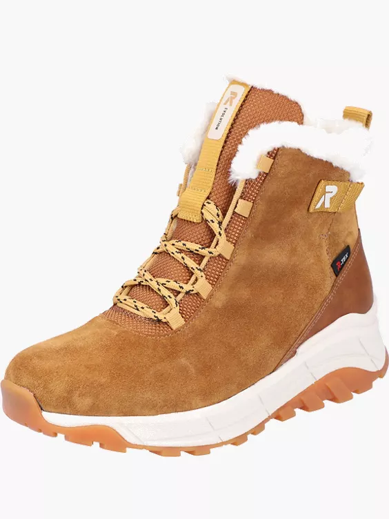 Alle Damen mit kalten Füßen aufgepasst: Mit diesen kuschelig-gefütterten Stiefeln von Rieker EVOLUTION aus hellbraunem Rauleder gehören kalte Füße der Vergangenheit an! Die dicke, weisse Laufsohle des Schnürers ist superleicht! Die softe Einlegesohle mit Kälteblocker lässt sich ganz leicht herausnehmen. Schmutz und Wasser können diesen Stiefeln gar nichts! Die clevere TEX-Membran plus Nano-Beschichtung sind ein unschlagbares Schutzschild!