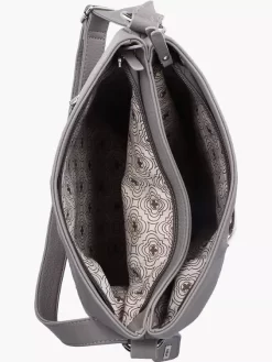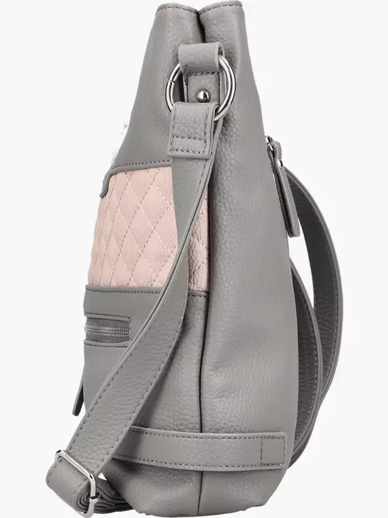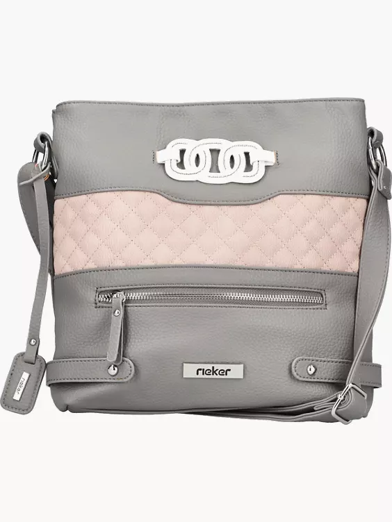 Graue Maus! Diese Handtasche von Rieker ist klassisch grau, aber deswegen noch lang nicht langweilig. Der breite rosane Streifen mit Rauten aus Ziernähten setzt einen stilvollen Akzent. Durch große Hauptfächer und Nebenfächer ist die Tasche sehr geräumig.