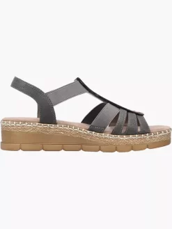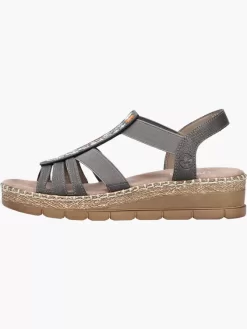 Wow-Faktor! Diese asphaltgrauen Keilsandaletten aus Kunstleder von Rieker geben dem Fuß Freiraum und halten ihn dennoch sicher. Der Elastikeinsatz ermöglicht ein leichtes An- und Ausziehen. Schmale Riemchen bieten außerdem ein optisch spannendes Bild. Der Mittelriemen mit gestickten Blumen rundet den Look des Schuhs harmonisch ab. Die schockabsorbierende und sehr leichte Sohle mit Keilabsatz ist ein Wohlfühlfaktor on top und die extra weiche Decksohle ist ein weiteres Plus. Außerdem bietet die schmale Passform E 1/2 zusätzlichen Halt. Mehr geht nicht!