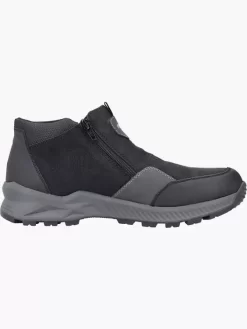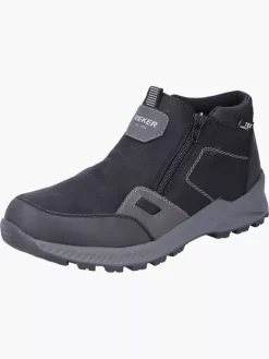 Das ist der Gipfel – an Komfort! Diese asphaltschwarzen Kurzstiefel mit knöchelhohem Schaft von Rieker überzeugen durch modernes Design und hohen Tragekomfort. Für bequemes An- und Ausziehen sorgt der seitliche Reißverschluss. Eine schwarze, runde Kappe rundet den Look des Schuhs harmonisch ab. Die leichte und schockabsorbierende Profilsohle verwöhnt die Füße zusätzlich bei jedem Schritt. Die Kurzstiefel punkten zusätzlich mit einer besonders weichen Einlegesohle. Durch die Komfortweite G 1/2 ist dir mehr Freiraum im Schuh geboten. Das kuschelige Lammwollfutter und die RiekerTex-Technologie halten die Füße warm und trocken.