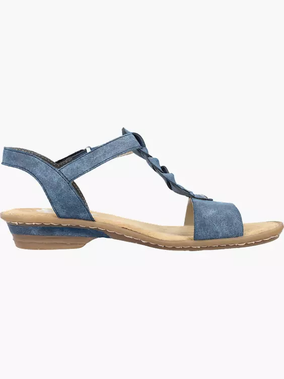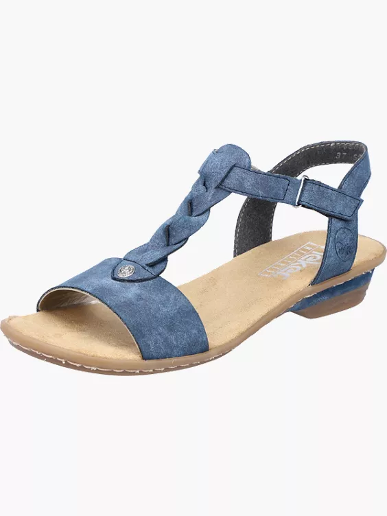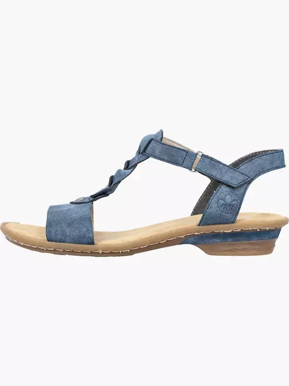 Achtung Lieblingsschuh-Potential! Diese pazifikblauen Riemchensandaletten aus Kunstleder von Rieker geben dem Fuß Freiraum und halten ihn dennoch sicher. Sie sind dank eines Klettverschlusses in Nullkommanichts angezogen. Der geflochtene Mittelriemen setzt einen frischen Akzent. Die griffige und robuste Sohle mit Blockabsatz sorgt für guten Halt. 100% Lieblingsschuh-Potential!