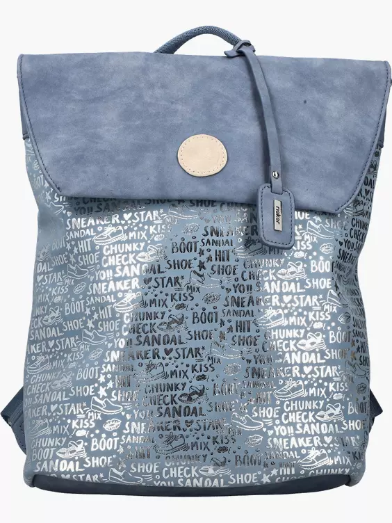 Ein echtes Styling-Genie! Dieser Rucksack von Rieker in klassischem Pazifikblau wird durch ein trendiges Motiv in Platinsilber aufgepeppt. Aber auch Komfort und Alltagstauglichkeit kommen nicht zu kurz. Der Rucksack verfügt über ein atmungsaktives Polster auf der Rückseite und bietet viel Platz im großen Hauptfach und dem außenliegenden Nebenfach.